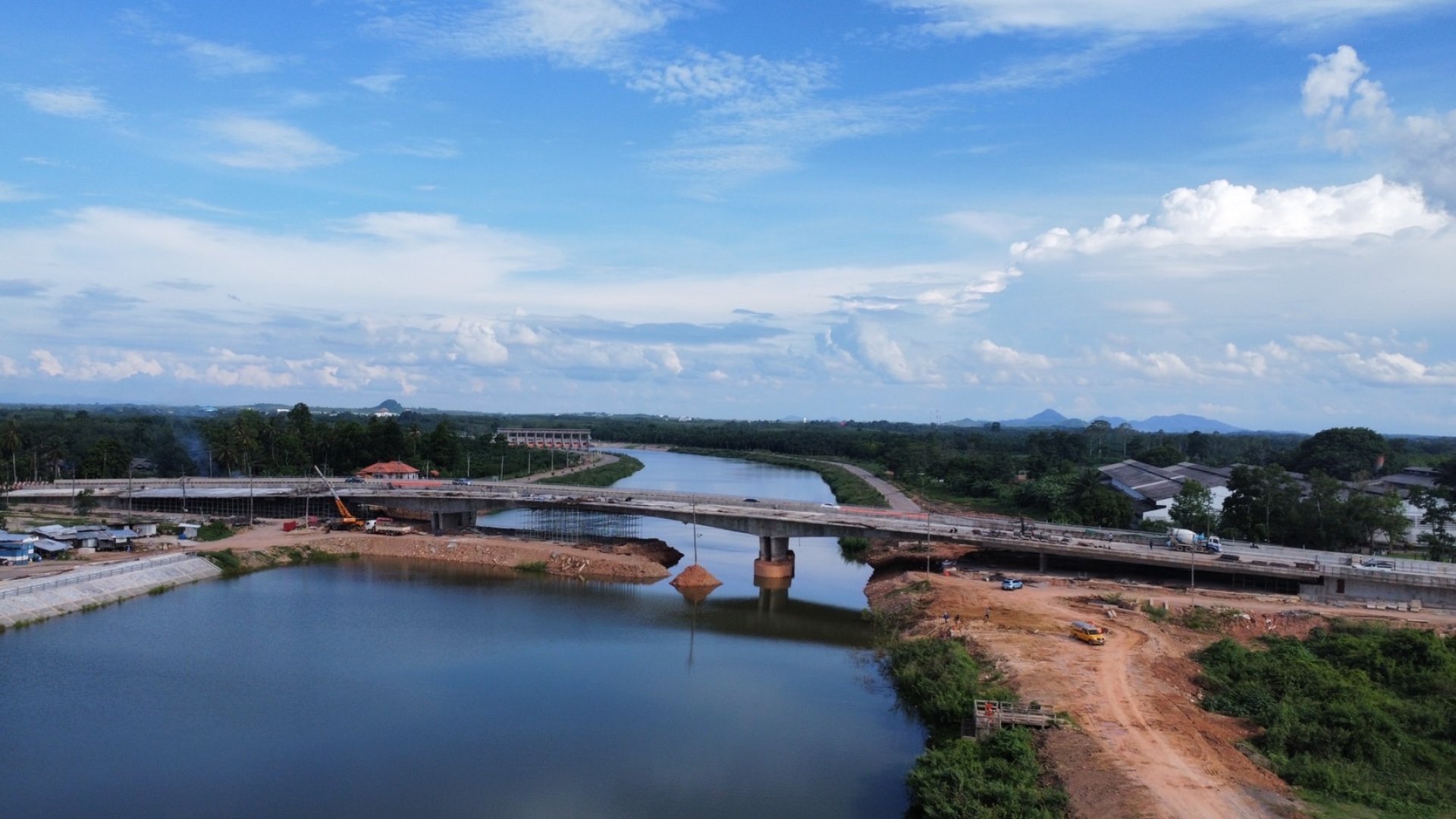 กรมทางหลวงดำเนินการก่อสร้าง สะพานคอนกรีตอัดแรงแบบ Balanced Cantilever ข้ามคลองผันน้ำในโครงการระบบระบายน้ำแม่น้ำตรัง บริเวณช่วง กม. 5+200 กม. 6+450